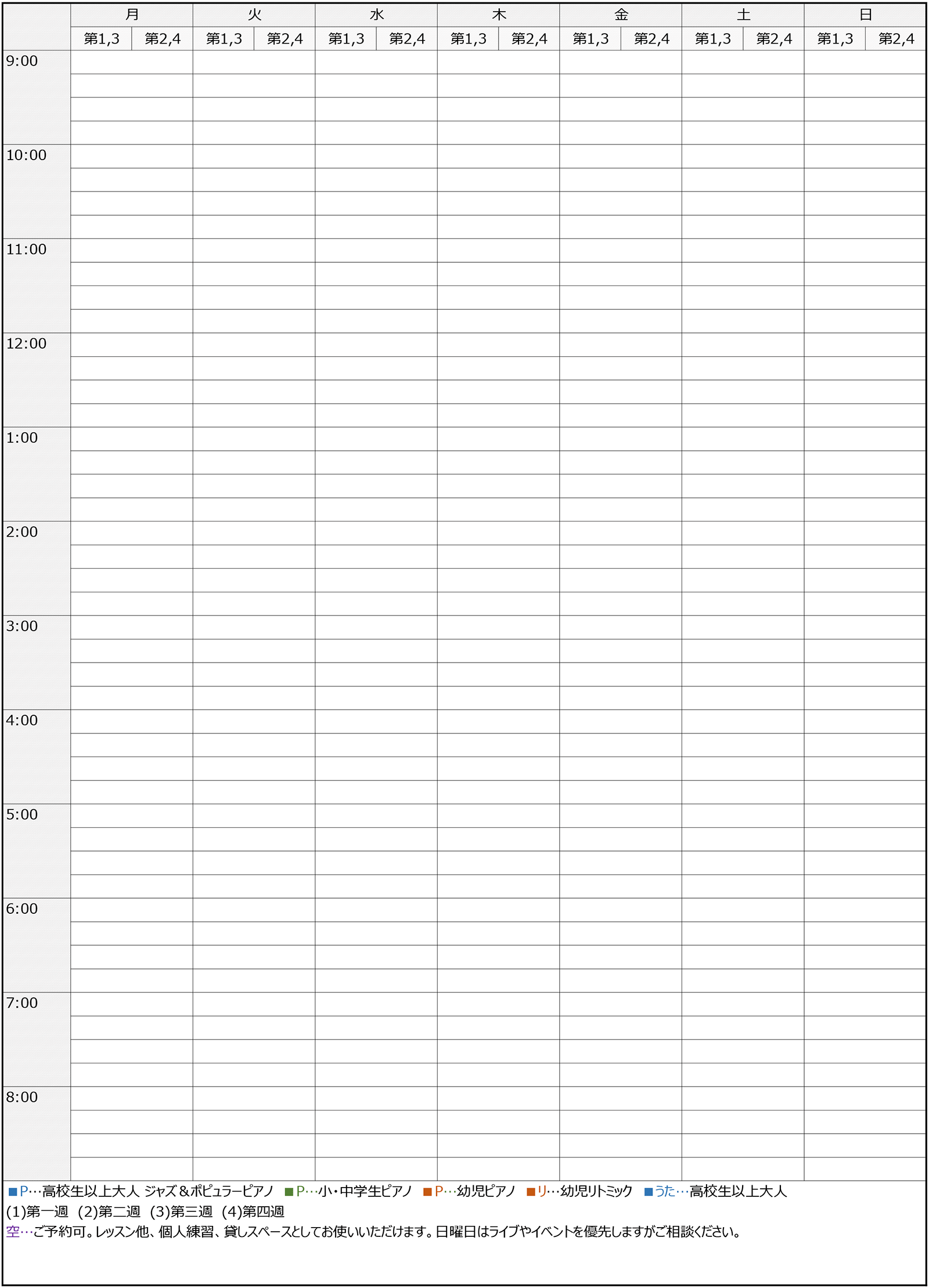 - ご予約済みの時間帯以外で個人レッスンをお受けいたします(スケジュール表をご参照ください)。
